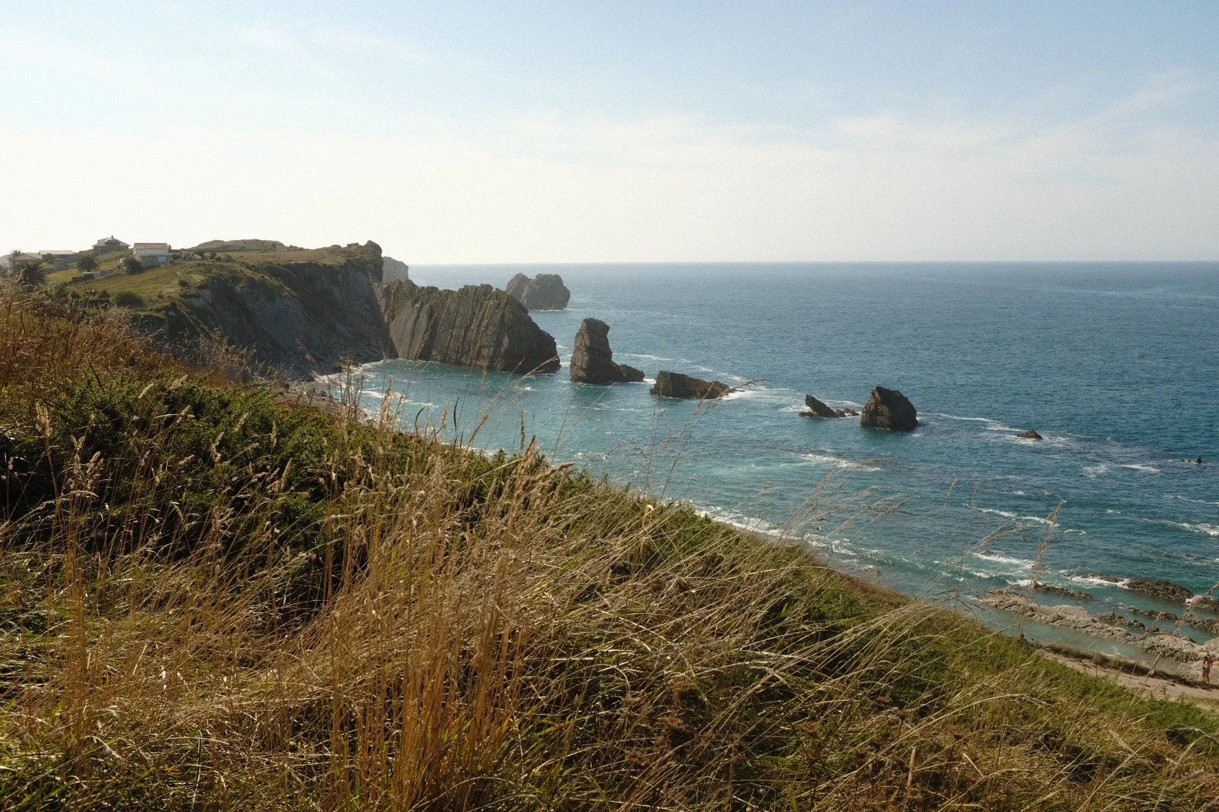 Near this coastal town, Playa de las Catedrales is considered one of the most beautiful beaches in the world. Unfortunately for me, I arrived at high tide, which prevented me from accessing the beach to walk among the cliffs and sea caves formed by marine erosion. I satisfy myself with admiring a rainbow and hitting the road again to reach the Cabo Ortega lighthouse, the place between the Cantabrian Sea and the Atlantic Ocean.